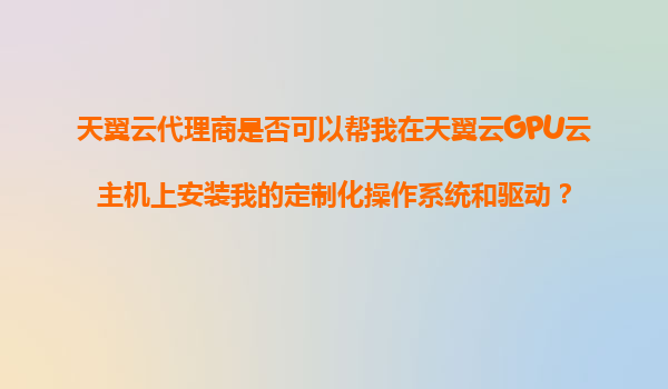 2025-11-06天翼云代理商是否可以幫我在天翼云GPU云主機上安裝我的定制化操作系統和驅動? 一、天翼云GPU云主機的核心優勢 天翼云作為中國電信旗下云計算品牌,其GPU云主機服務依托以下優勢在行業占據領先地位: 高...