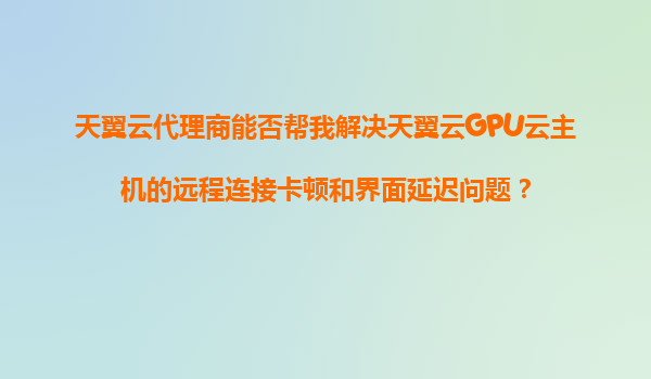 2025-11-06天翼云代理商能否解決天翼云GPU云主機的遠程連接卡頓和界面延遲問題? 一、問題背景與代理商的作用 在使用天翼云GPU云主機時,部分用戶可能會遇到遠程連接卡頓或界面延...