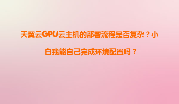 2025-11-06天翼云GPU云主機部署流程解析:小白也能輕松上手的配置指南 一、GPU云主機核心價值與應用場景 天翼云GPU云主機搭載高性能NVIDIA顯卡,為深度學習訓練、圖像渲染、科學計算等場景提供澎湃算力...