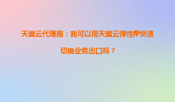 4008-020-360 天翼云代理商:如何利用彈性IP快速切換業(yè)務(wù)出口 一、什么是天翼云彈性IP 天翼云彈性IP(ElasticIP,簡稱EIP)是一種可以獨立申請和釋放的公網(wǎng)IP資源,支持動態(tài)綁定到云主機、負載均衡等計算實例上。與傳統(tǒng)靜態(tài)IP...