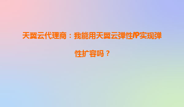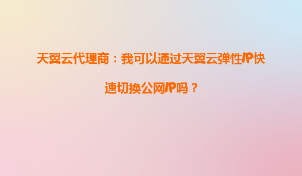 2025-09-19天翼云代理商:我可以通過天翼云彈性IP快速切換公網IP嗎?一、彈性IP的核心價值與應用場景天翼云彈性IP(EIP)是一種可獨立購買和持有的公網IP資源,其核心優勢在于允許用戶將IP地址與云服務器、負載均衡等實...