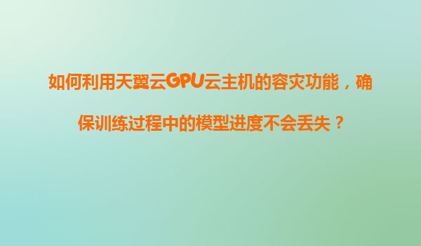 2025-11-05如何利用天翼云GPU云主機的容災功能確保訓練過程中模型進度不丟失 引言 隨著人工智能和深度學習技術的快速發展,模型訓練的規模和復雜度日益增加。在長時間的訓練過程中,如何確保模型進度不會因為硬件故障、網...