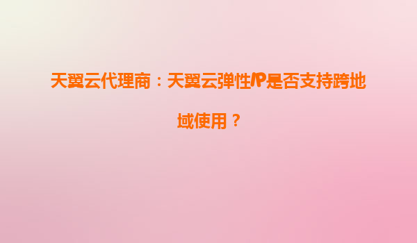 2025-09-18天翼云彈性IP的跨地域使用解析 在云計算領域,彈性IP(EIP)是企業構建靈活網絡架構的重要資源。天翼云作為中國電信旗下領先的云服務提供商,其彈性IP功能備受關注。許多用戶特別是天翼云代理商常會問到一個核心...