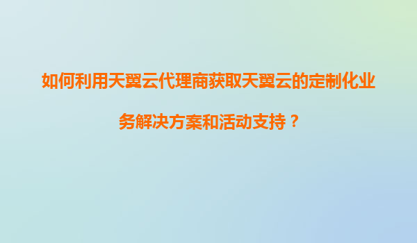 2025-11-10如何利用天翼云代理商獲取天翼云的定制化業(yè)務解決方案和活動支持? 一、天翼云與代理商的協(xié)同優(yōu)勢 天翼云作為中國電信旗下的云計算服務品牌,憑借電信級的基礎設施和全國覆蓋的網絡資源,為企業(yè)提供穩(wěn)定、安全...