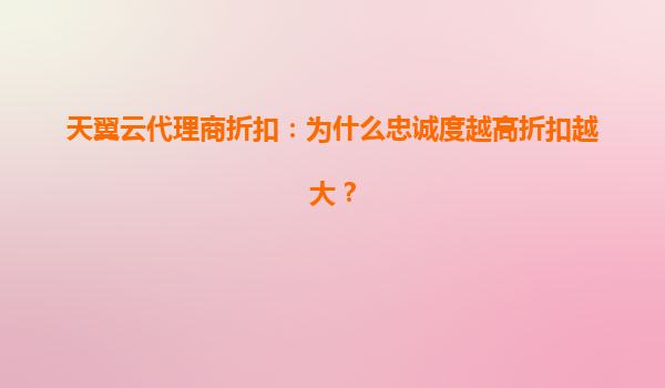 天翼云代理商折扣機制解析:為什么忠誠度越高折扣越大?
