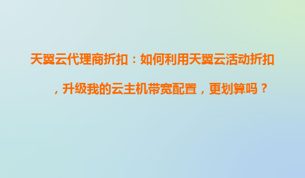 天翼云代理商折扣:如何利用天翼云活動折扣,升級云主機帶寬配置更劃算?