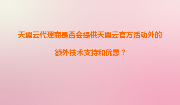 2025-11-04天翼云代理商是否會提供天翼云官方活動外的額外技術支持和優惠? 隨著云計算技術的快速普及,越來越多的企業開始將業務遷移到云端。作為國內領先的云服務提供商,天翼云憑借其強大的技術實力和優質的服務,...