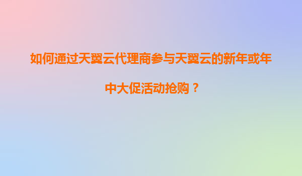 天翼云代理商參與大促活動的優勢指南 中國電信天翼云作為國內領先的云服務提供商,其新年和年中大促活動為企業和個人用戶提供了極具性價比的云產品搶購機會。通過天翼云代理商參與這些大促活動,用戶不僅能享受...