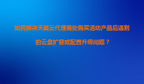 2025-11-04如何解決天翼云代理商處購(gòu)買(mǎi)活動(dòng)產(chǎn)品后遇到的云盤(pán)擴(kuò)容或配置升級(jí)問(wèn)題? 一、問(wèn)題背景與天翼云核心優(yōu)勢(shì) 在天翼云代理商渠道購(gòu)買(mǎi)活動(dòng)產(chǎn)品后,用戶(hù)可能會(huì)遇到云盤(pán)擴(kuò)容或配置升級(jí)需求。作為...