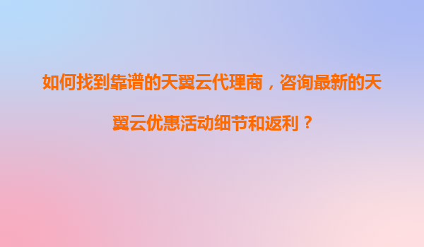 2025-11-03如何找到靠譜的天翼云代理商,獲取最新優(yōu)惠活動(dòng)細(xì)節(jié)和返利政策 一、天翼云的市場(chǎng)優(yōu)勢(shì)解析 作為中國(guó)電信旗下的云計(jì)算品牌,天翼云憑借以下核心優(yōu)勢(shì)成為企業(yè)數(shù)字化轉(zhuǎn)型的重要選擇: 央企背景保障安全:通過(guò)國(guó)家...