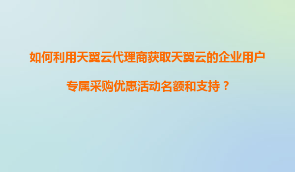2025-11-04如何利用天翼云代理商獲取天翼云的企業(yè)用戶(hù)專(zhuān)屬采購(gòu)優(yōu)惠活動(dòng)名額和支持? 一、天翼云及其代理商的優(yōu)勢(shì) 天翼云作為中國(guó)電信旗下的云計(jì)算品牌,憑借其強(qiáng)大的基礎(chǔ)設(shè)施、安全可靠的服務(wù)和豐富的行業(yè)經(jīng)驗(yàn),已成...