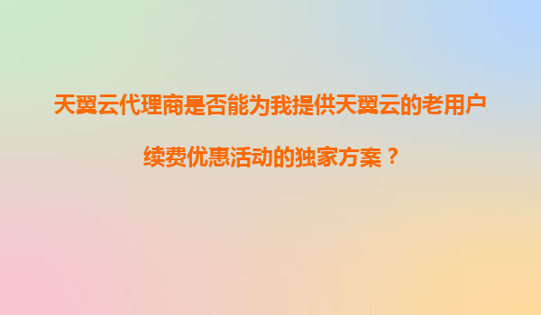 2025-11-04天翼云代理商能否提供老用戶(hù)續(xù)費(fèi)優(yōu)惠的獨(dú)家方案?深度解析天翼云優(yōu)勢(shì)與代理服務(wù)價(jià)值 一、天翼云代理商的核心價(jià)值 天翼云官方授權(quán)代理商是企業(yè)用戶(hù)獲取云計(jì)算服務(wù)的重要...