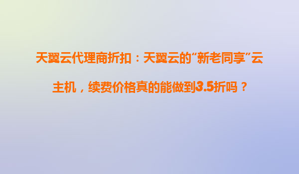 2025-10-31天翼云代理商折扣:天翼云“新老同享”云主機,續(xù)費價格真的能做到3.5折嗎? 引言 隨著云計算市場的快速發(fā)展,越來越多的企業(yè)開始關注云服務的性價比。天翼云作為中國電信旗下的云計算品牌,憑借其強...