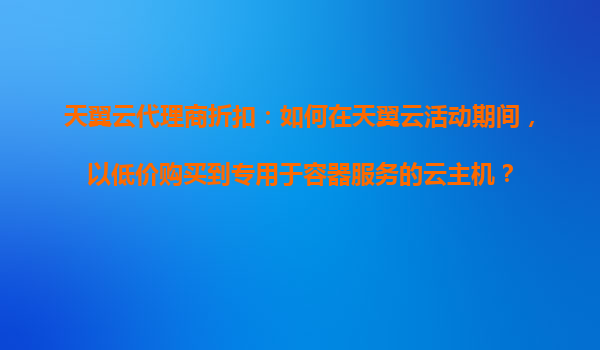 2025-11-01天翼云代理商折扣:如何在天翼云活動期間,以低價購買專用于容器服務的云主機? 一、天翼云容器服務與云主機的核心價值 天翼云作為中國電信旗下云計算品牌,為容器化應用提供高性能、彈性的云主機服務。...