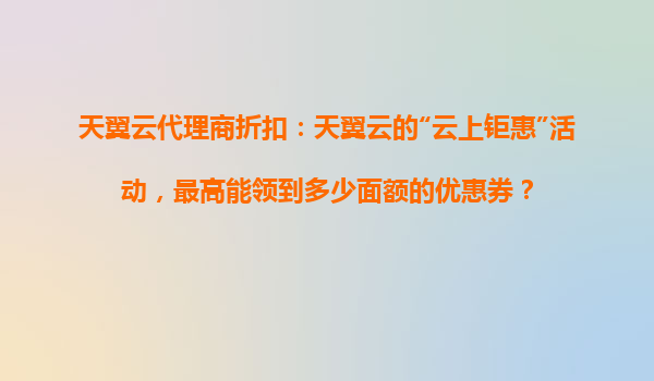 2025-10-31天翼云代理商折扣解析:"云上鉅惠"活動優(yōu)惠券面額及合作優(yōu)勢 一、天翼云"云上鉅惠"活動核心福利 在天翼云近期推出的"云上鉅惠"促銷活動中,用戶最高可領取5000元面額的云服務優(yōu)惠券。該活動針對新老用...