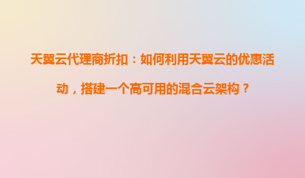 2025-10-31如何利用天翼云代理商折扣搭建高可用混合云架構 一、混合云架構的價值與天翼云優(yōu)勢 混合云架構結合了公有云的靈活性和私有云的安全性,已成為企業(yè)數(shù)字化轉型的主流選擇。天翼云作為中國電信旗下云計算...