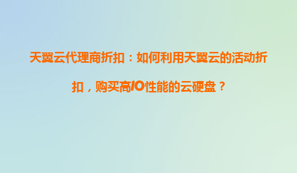 2025-10-31天翼云代理商折扣:如何利用天翼云的活動折扣,購買高IO性能的云硬盤? 一、天翼云的優(yōu)勢與高IO性能云硬盤的價值 天翼云作為中國電信旗下的云計算服務商,憑借豐富的網絡資源和穩(wěn)定的基礎設施,在云存儲領...