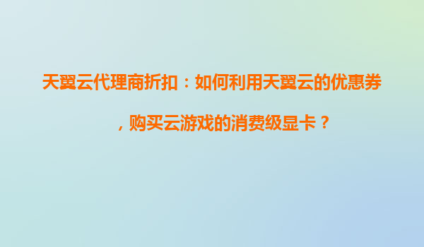 天翼云代理商折扣:如何利用天翼云的優(yōu)惠券,購買云游戲的消費級顯卡? 一、天翼云及其代理商的優(yōu)勢 天翼云作為中國電信旗下的云計算服務提供商,憑借其強大的技術支持和廣泛的市場資源,為企業(yè)和個人用戶提...