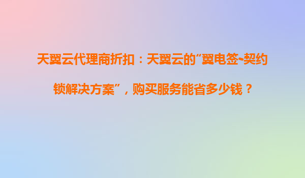 2025-11-01天翼云代理商折扣:翼電簽-契約鎖解決方案為您節(jié)省成本 一、天翼云代理商折扣概述 天翼云作為中國電信旗下的云計算服務品牌,為企業(yè)用戶提供全方位的云服務解決方案。通過天翼云代理商購買云服務,...