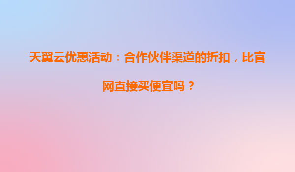 2025-04-04天翼云優(yōu)惠活動:合作伙伴渠道折扣是否比官網(wǎng)更劃算? 一、天翼云的核心優(yōu)勢解析 在探討合作伙伴渠道的優(yōu)惠力度之前,首先要理解天翼云作為國內(nèi)領(lǐng)先云服務(wù)商的...