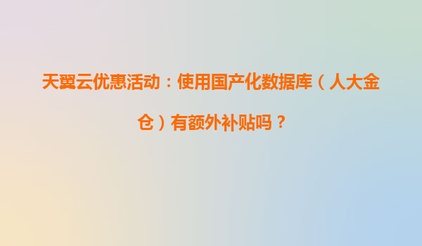 2025-04-04天翼云國產(chǎn)化數(shù)據(jù)庫優(yōu)惠活動:使用人大金倉,享多重補(bǔ)貼與云端優(yōu)勢 一、天翼云國產(chǎn)化戰(zhàn)略下的數(shù)據(jù)庫補(bǔ)貼政策 為響應(yīng)國家信息技術(shù)應(yīng)用創(chuàng)新(信創(chuàng))戰(zhàn)略,天翼云推出國產(chǎn)化數(shù)據(jù)庫專項(xiàng)扶持計(jì)劃。針對...