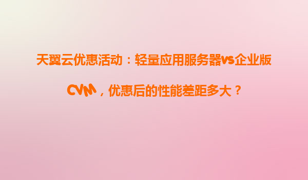 2025-04-04天翼云優(yōu)惠活動:輕量應(yīng)用服務(wù)器與企業(yè)版CVM性能對比解析 活動背景與產(chǎn)品定位 天翼云近期推出的優(yōu)惠活動,重點(diǎn)聚焦于輕量應(yīng)用服務(wù)器和企業(yè)版云主機(jī)(CVM)兩大核心產(chǎn)品。輕量應(yīng)用服務(wù)器面向中小型項(xiàng)目及個(gè)...