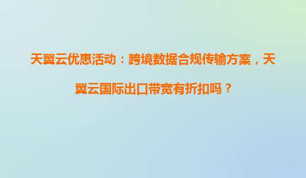 4008-020-360 天翼云優(yōu)惠活動:跨境數(shù)據(jù)合規(guī)傳輸方案與國際出口帶寬折扣詳解 一、天翼云跨境數(shù)據(jù)合規(guī)傳輸方案背景 隨著全球數(shù)字化進(jìn)程加速,企業(yè)跨境數(shù)據(jù)傳輸需求激增,但數(shù)據(jù)安全與合規(guī)性成為核心挑戰(zhàn)。天翼云...