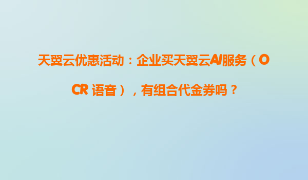 2025-04-03天翼云AI服務(wù)組合優(yōu)惠活動(dòng)來(lái)襲,助力企業(yè)高效升級(jí) 在數(shù)字化轉(zhuǎn)型浪潮中,天翼云憑借其深厚的技術(shù)積累與資源優(yōu)勢(shì),推出“OCR+語(yǔ)音AI服務(wù)組合購(gòu)買贈(zèng)代金券”專項(xiàng)活動(dòng),為企業(yè)提供高性價(jià)比的智能化解決...
