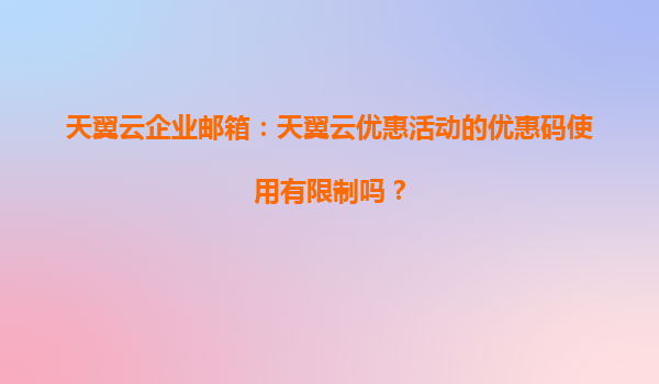 2025-04-01天翼云企業(yè)郵箱優(yōu)惠碼使用規(guī)則解析及其核心優(yōu)勢(shì) 一、天翼云企業(yè)郵箱優(yōu)惠碼能否重復(fù)使用? 天翼云企業(yè)郵箱的優(yōu)惠碼使用規(guī)則需根據(jù)具體活動(dòng)條款確定。通常情況下: 單次活...