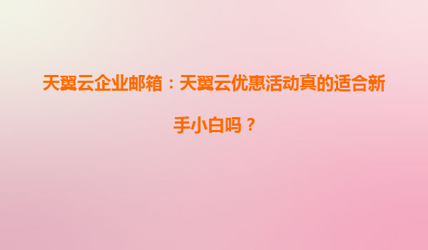 2025-04-01天翼云企業(yè)郵箱優(yōu)惠活動(dòng)深度解析:最低折扣與核心優(yōu)勢(shì) 一、天翼云企業(yè)郵箱的核心競(jìng)爭(zhēng)力 作為中國(guó)電信旗下的云計(jì)算品牌,天翼云企業(yè)郵箱憑借其技術(shù)實(shí)力與服務(wù)體系,已成為中小企業(yè)數(shù)...