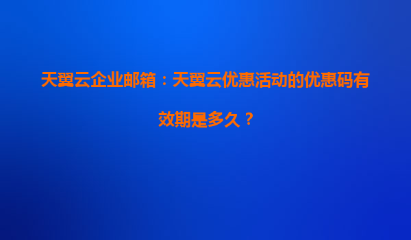 2025-04-01天翼云企業(yè)郵箱優(yōu)惠活動(dòng)詳解:優(yōu)惠碼有效期及核心優(yōu)勢(shì) 一、天翼云企業(yè)郵箱優(yōu)惠碼有效期說(shuō)明 當(dāng)前天翼云推出的企業(yè)郵箱優(yōu)惠活動(dòng)備受關(guān)注,用戶最關(guān)心的問(wèn)題之一是優(yōu)惠碼的有效期。根據(jù)官方規(guī)則,優(yōu)...
