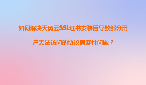 2025-11-05如何解決天翼云SSL證書安裝后導致部分用戶無法訪問的協議兼容性問題? 問題背景與現象分析 在天翼云環境中部署SSL證書后,部分用戶可能因瀏覽器版本、設備系統或網絡環...