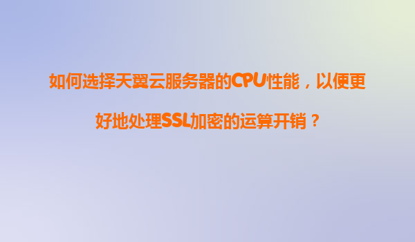 2025-11-04如何選擇天翼云服務器的CPU性能以優化SSL加密運算開銷 一、SSL加密的運算需求與CPU的關系 SSL/TLS協議廣泛應用于網站、API等場景的數據加密傳輸,但SSL握手過程中的非對稱加密(如RSA、E...