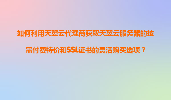 2025-11-04如何利用天翼云代理商獲取天翼云服務器的按需付費特價和SSL證書的靈活購買選項? 一、天翼云與代理商的協同優勢 天翼云作為中國電信旗下云計算品牌,在基礎設施、安全性和本土化服務方面具有顯著優勢。...