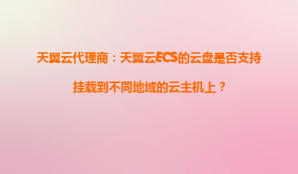 2025-11-01天翼云代理商解析:天翼云ECS云盤能否跨地域掛載至云主機? 一、天翼云ECS云盤跨地域掛載的核心問題 天翼云作為中國電信旗下的云計算服務商,其彈性計算服務(E...