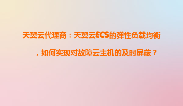 2025-11-01天翼云代理商:天翼云ECS彈性負載均衡如何實現對故障云主機的及時屏蔽 引言 隨著云計算技術的快速發展,企業對云服務的可用性和穩定性提出了更高的要求。天翼云作為中國電信旗下的云計算服務品牌,憑借其強...