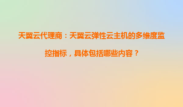 2025-10-29天翼云代理商:天翼云彈性云主機的多維度監控指標 一、天翼云彈性云主機的核心優勢 作為中國電信旗下的云計算服務提供商,天翼云憑借其強大的基礎設施資源、穩定的網絡環境和靈活的彈性計算能力,在云計算...