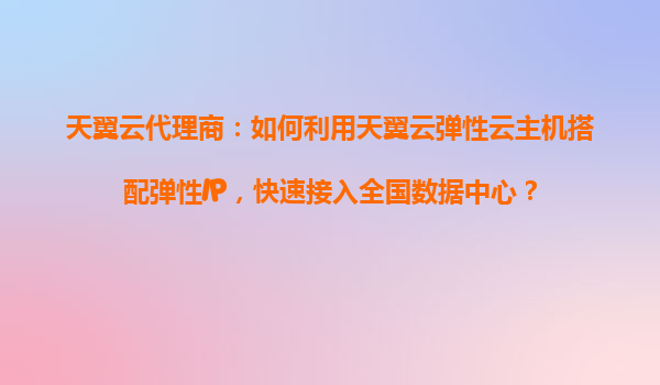 2025-10-29天翼云代理商:如何利用天翼云彈性云主機搭配彈性IP快速接入全國數據中心 隨著企業數字化轉型加速,云計算已成為業務發展的核心驅動力。天翼云作為中國電信旗下的云計算服務品牌,憑借其強大的基礎設施和靈...