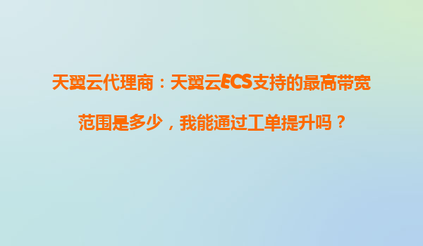 2025-10-29天翼云代理商:天翼云ECS最高帶寬范圍及工單調整指南 一、天翼云ECS帶寬范圍解析 天翼云作為中國電信旗下的云計算服務品牌,其彈性計算服務(ECS)提供靈活的帶寬配置選項,以滿足不...