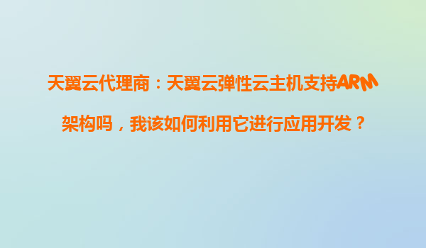 2025-10-28天翼云彈性云主機ARM架構解析:代理商的優勢與應用開發指南 一、天翼云彈性云主機是否支持ARM架構? 天翼云作為中國電信旗下的云計算服務品牌,其彈性云主機(E...