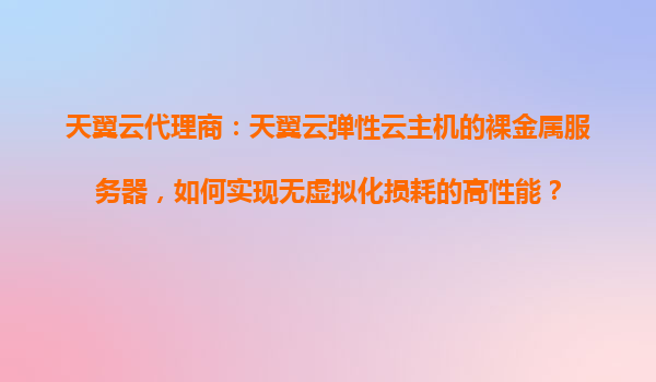 2025-10-28天翼云彈性云主機的裸金屬服務器:如何實現無虛擬化損耗的高性能 引言 隨著云計算技術的快速發展,企業對云服務器的性能需求越來越高。傳統的虛擬化技術雖然提供了靈活的資源調度和管理能力,但也帶來了不...