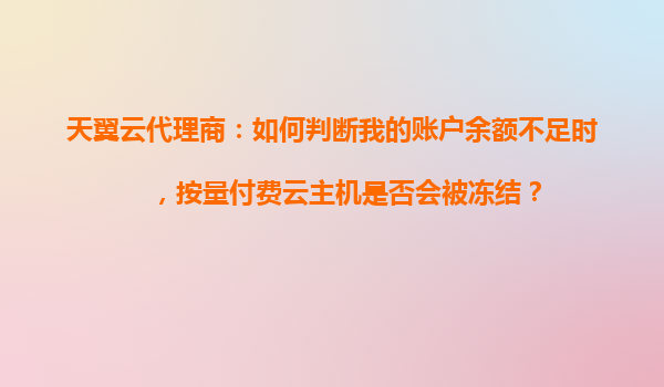 2025-10-28天翼云代理商指南:賬戶余額不足時按量付費云主機的處理機制 天翼云按量付費模式的靈活性 天翼云作為中國電信旗下的云計算服務商,其按量付費模式為用戶提供了極高的靈活性和成本控制能力。這種模式允許用...