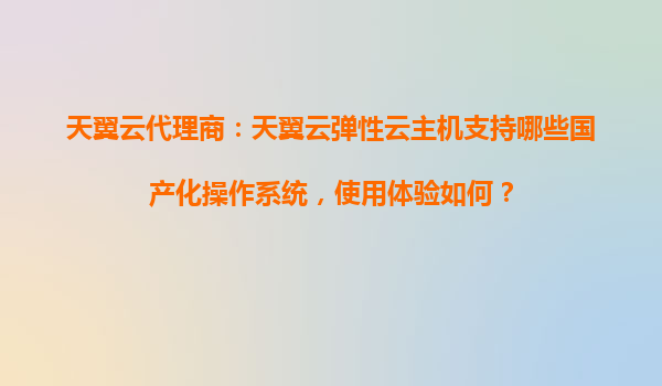 2025-10-28天翼云彈性云主機支持的國產化操作系統及使用體驗 一、天翼云彈性云主機簡介 天翼云作為中國電信旗下的云計算服務品牌,憑借其強大的基礎設施和技術實力,為企業用戶提供高性能、高可靠的...