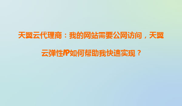 2025-10-27天翼云代理商:我的網站需要公網訪問,天翼云彈性IP如何幫助我快速實現? 一、引言:公網訪問的核心需求與彈性IP的價值 在數字化轉型的浪潮中,企業網站或應用需要提供公網訪問能力以滿足用戶隨時...