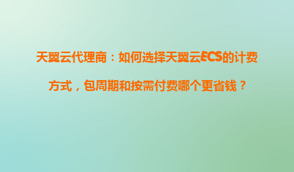 2025-10-27天翼云代理商指南:如何選擇天翼云ECS計費方式?包周期與按需付費深度對比 一、天翼云ECS計費方式概述 天翼云作為中國電信旗下云計算品牌,提供彈性計算服務(ECS)時支持兩種主流計費模...