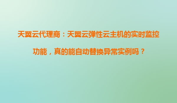2025-10-27天翼云彈性云主機的實時監控與自動替換:代理商的優勢解析 一、彈性云主機實時監控的核心功能 天翼云彈性云主機(ECS)的實時監控功能依托于分布式探...