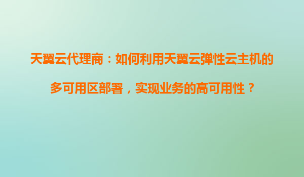2025-10-27天翼云代理商:如何利用天翼云彈性云主機的多可用區部署,實現業務的高可用性? 一、天翼云多可用區部署的核心優勢 天翼云作為中國電信旗下云計算服務品牌,其彈性云主機(ECS)的多可用區(Availabili...