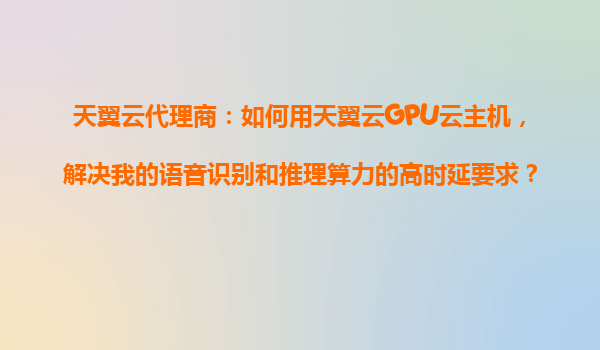 2025-10-27天翼云代理商:如何用天翼云GPU云主機解決語音識別與推理算力的高時延問題 一、高時延問題的挑戰與GPU云主機的價值 在語音識別和AI推理場景中,算力響應速度直接影響用戶體驗和業務效率。傳統本地服務器或...