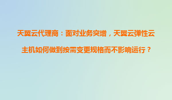 2025-10-27天翼云代理商:彈性云主機如何實現業務突增下的無縫規格變更? 一、業務突增的挑戰與彈性需求 在數字化轉型浪潮中,企業業務流量可能因促銷、季節性活動或突發...