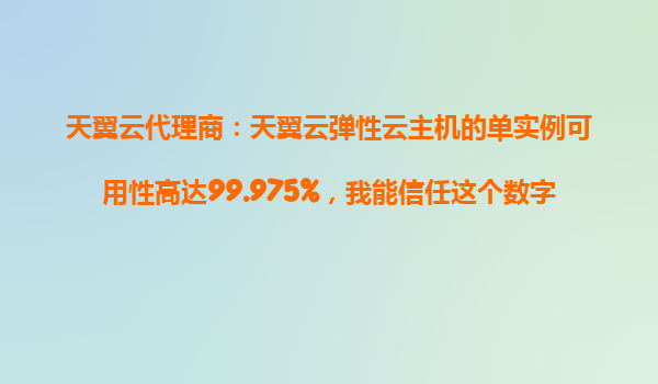 天翼云代理商:天翼云彈性云主機的單實例可用性高達99.975%,我能信任這個數字嗎? 在數字化轉型的大潮中,企業對云計算的依賴程度越來越高。云服務的可用性直接關系到企業的業務連續性和用戶體驗。作為中國電...